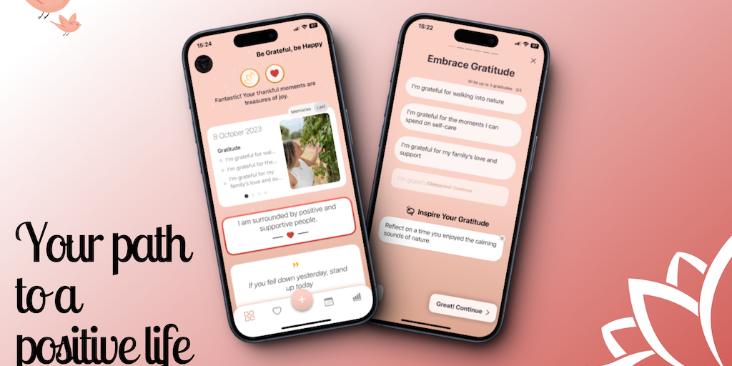 With Gratefully, you can effortlessly record your daily gratitude, enjoy empowering affirmations and explore uplifting quotes. A practical tool designed to increase positivity, improve well-being and