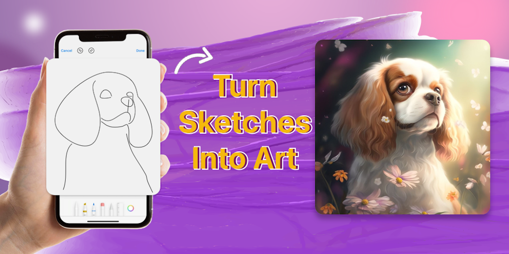 You have always wanted to draw a beautiful picture but it was too difficult. Now, you can type a sketch or you can sketch directly on your phone and then enter a prompt for that painting idea, wait a