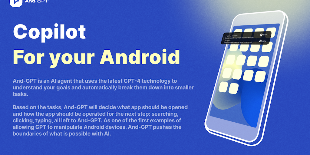 And-GPT is an AI agent that uses the latest GPT-4 technology to understand your goals and automatically break them down into smaller tasks. And-GPT will decide what app should be opened and how the ap
