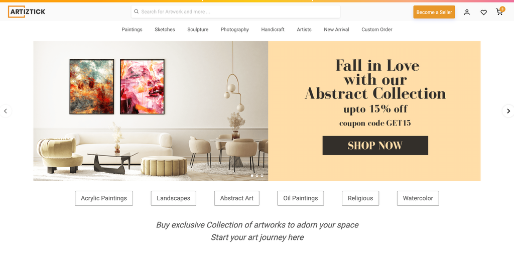 Artiztick is an online marketplace for authentic, handmade artworks at an affordable price from young and emerging artists across the country. We want to empower thousands of artists to earn from thei