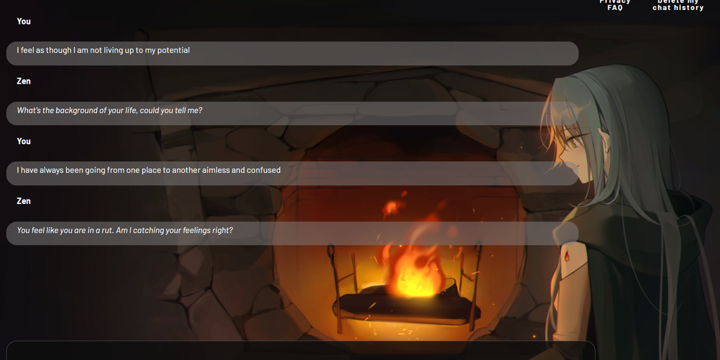 I created Zen, an AI chatbot for you to vent your emotions for free. Zen is based on the Carl Rogers' school of therapy and she listens with empathy to you.