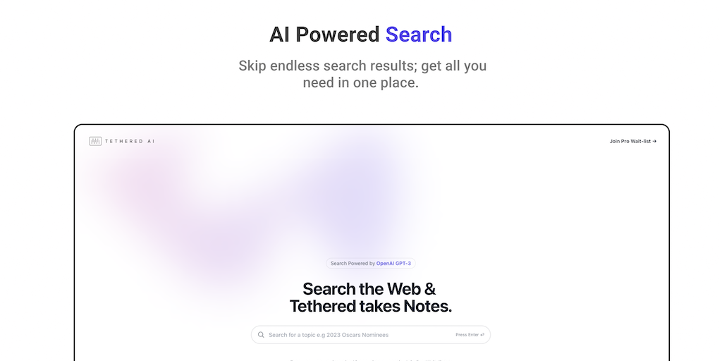 Meet Tethered AI — your AI-powered search assistant! Simplify web searches & get concise, organized notes. Save time & effort while searching the web. Try our beta at https://tethered.ai 🚀