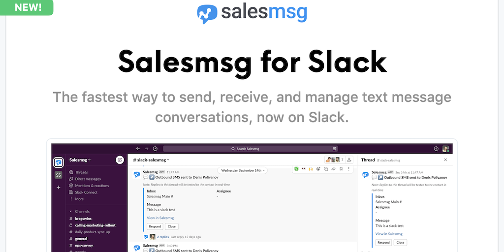 Salesmsg for Slack - Simple, scalable, two-way business texting, now on Slack | Product Hunt