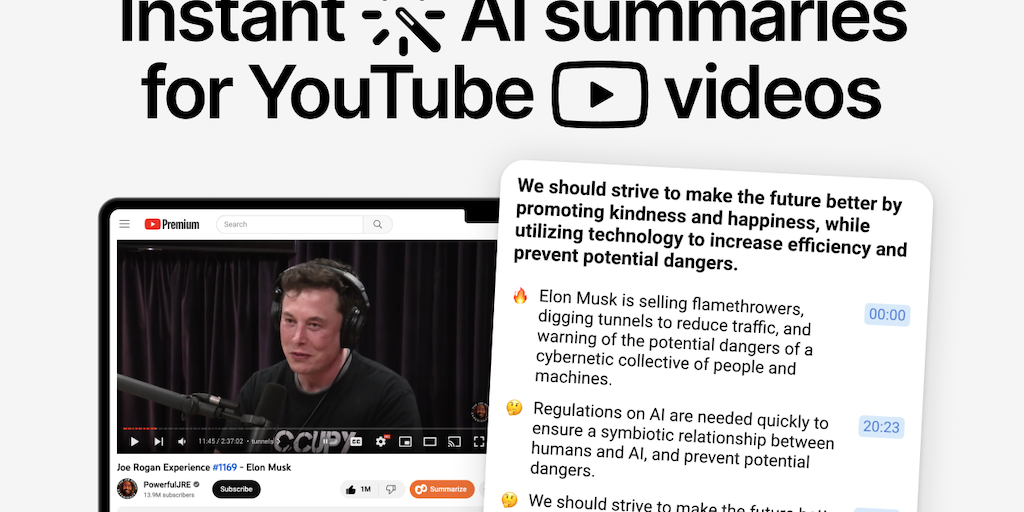 AI summaries for YouTube. Turn any long YouTube video into a Summary with 8 key ideas. Now you can instantly decide if the video is worth watching. Perfect for 👩💼business education, 🎙podcasts, 📺inter