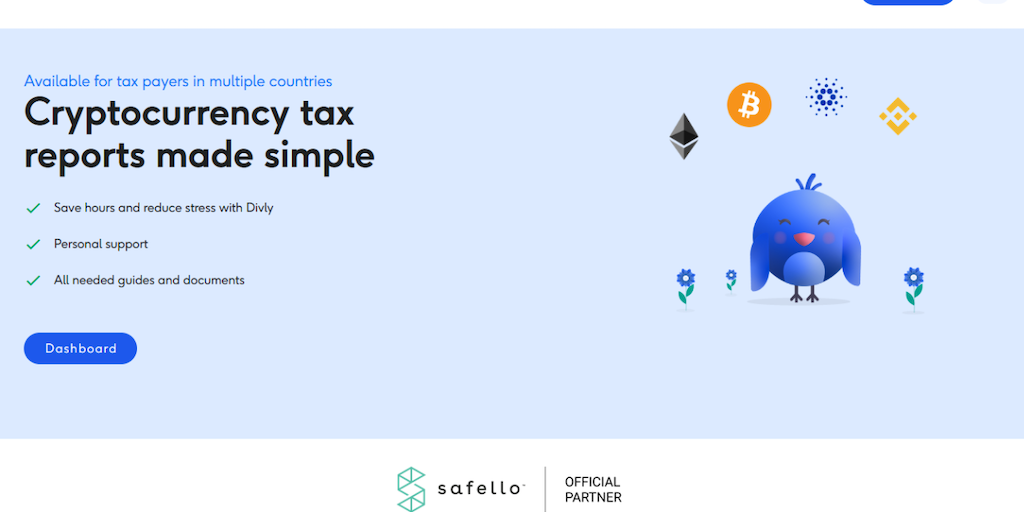 Divly is an international crypto tax calculator. Import your transactions and Divly provides you will all the requirements to submit a complete tax declaration to local authorities—making it easy!