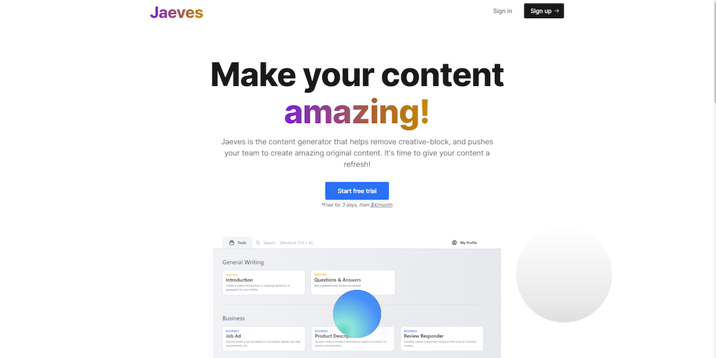 Jaeves - Write articles, content, and copy 10x faster using AI | Product Hunt