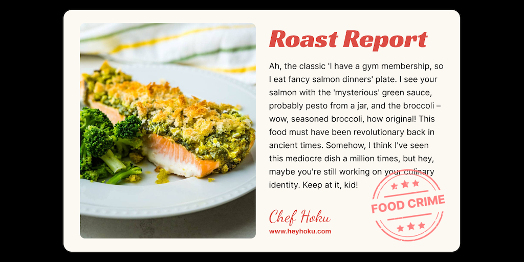 Roast My Meal by Hoku - Upload a photo of your food and get roasted by a savage AI | Product Hunt