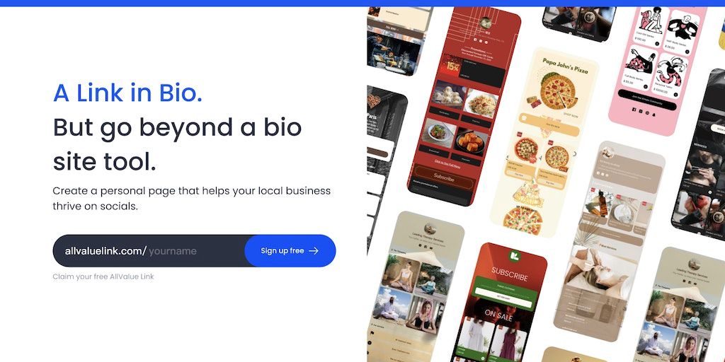 AllValue Link 2.0 is a mobile-first, one page website builder for local businesses and anyone to gain more leads, sales, subscribers and views on social media. Link to your socials, websites, services