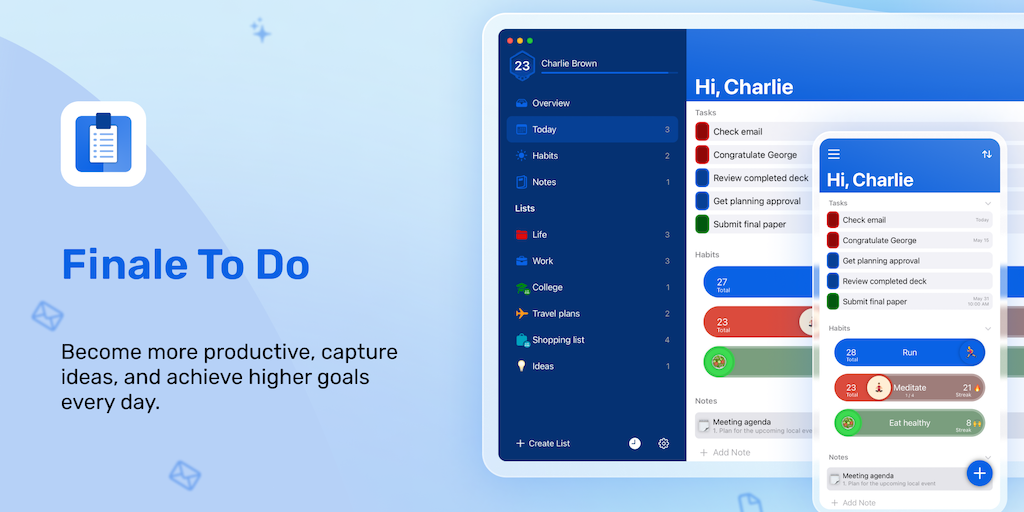 Finale To Do is a powerful daily planner, task manager and habit tracker. It is a flexible tool to help you organize to-do lists, manage tasks, build good habits, track shopping lists, schedule agenda