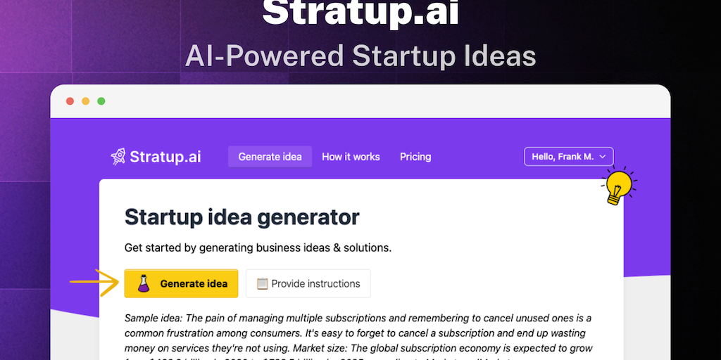 Stratup.ai - AI-Powered startup idea generator and strategic partner | Product Hunt