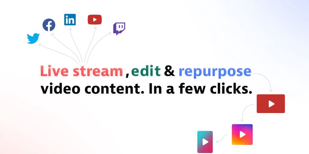Go live, edit & repurpose your video content with a single tool. 👆 btw. I recommend turning on the sound 🎧 on the video. I promise it's worth it.