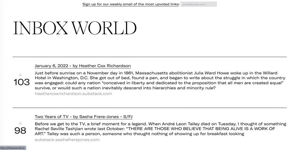Submit and vote on the best of Substack and other newsletter platforms. Find the best independent writing on the web.