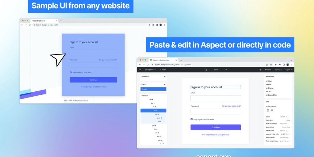 Aspect - Build react components visually. Copy UI code from any site | Product Hunt
