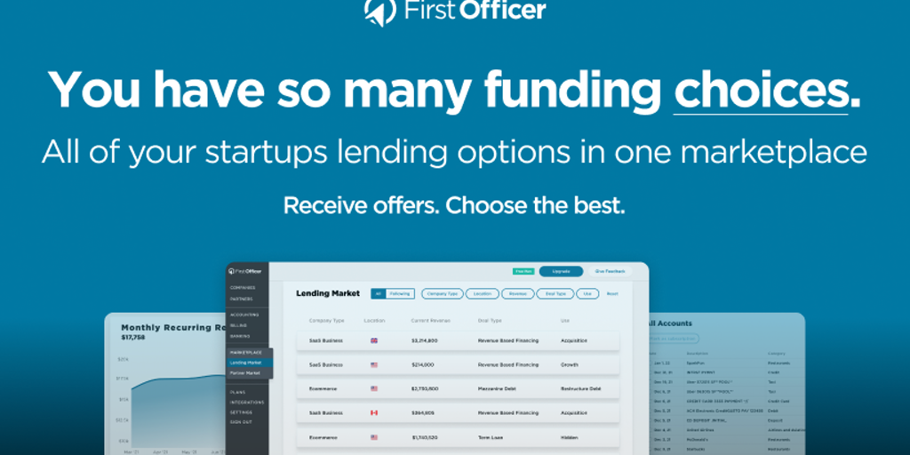 Your startup has so many more fast funding choices than you realize. FirstOfficer has created a private marketplace that allows lenders to privately present Startups a wide variety of lending choices.