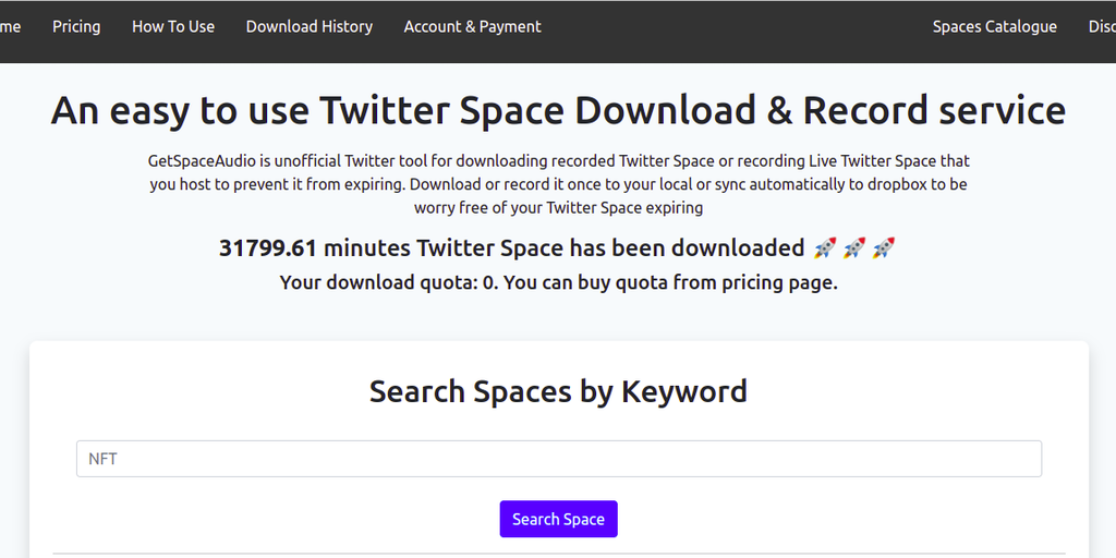 GetSpaceAudio - Twitter Spaces Search & Download Service | Product Hunt