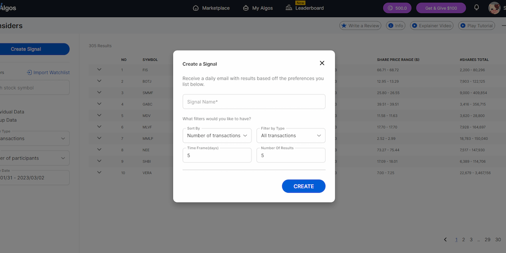 StockAlgos.com Insiders Tool - Analyze Insider Trading to make strategic investments | Product Hunt