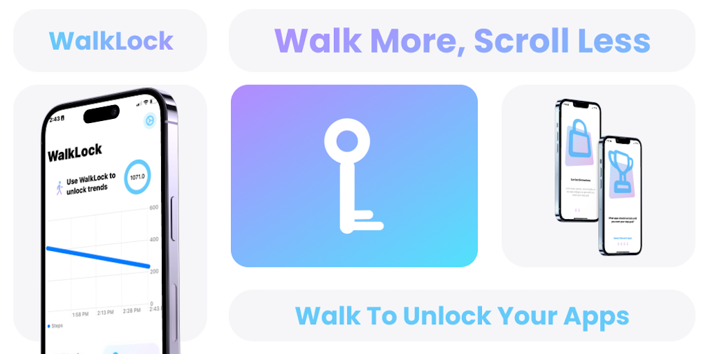 Walk More, Scroll Less WalkLock is an app that encourages less scrolling and more breaks from your phone. Automatically lock apps until you go for a walk to improve your health with WalkLock!