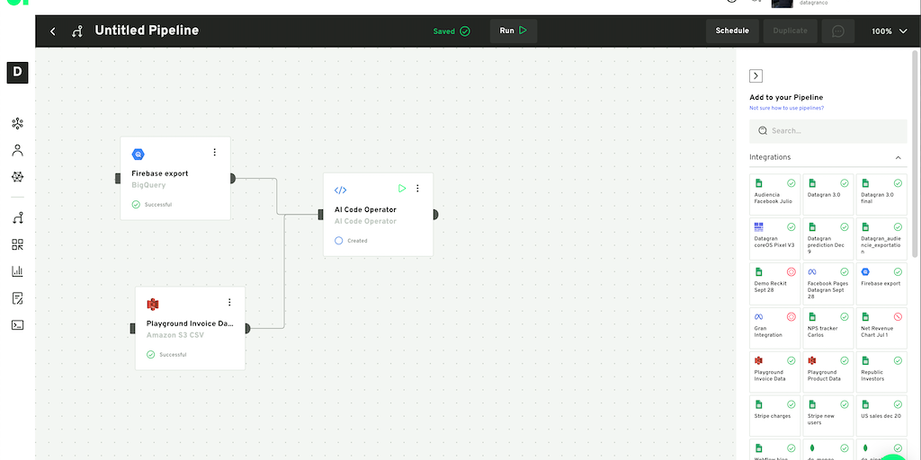 Let Jedi, your AI pair programmer, help you write your analytics or AI models, centralize your data in a next-gen data lake, and seamlessly send the output to any business application.