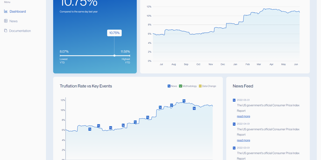 Truflation provides independent US inflation data and more economic data coming soon. It uses real market prices from 30+ providers for 10M items across 12 categories. It also calculates category pric