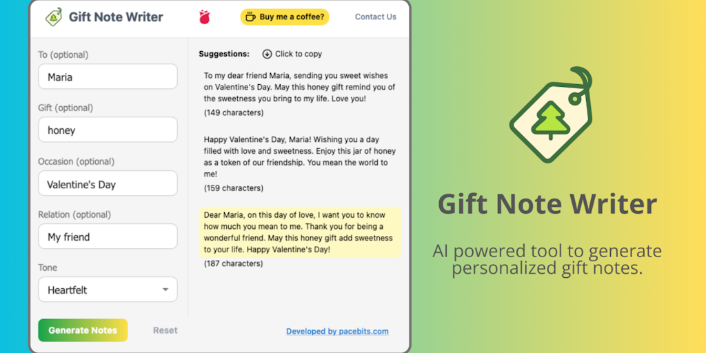 Gift Note Writer - AI powered tool to generate personalized gift notes | Product Hunt