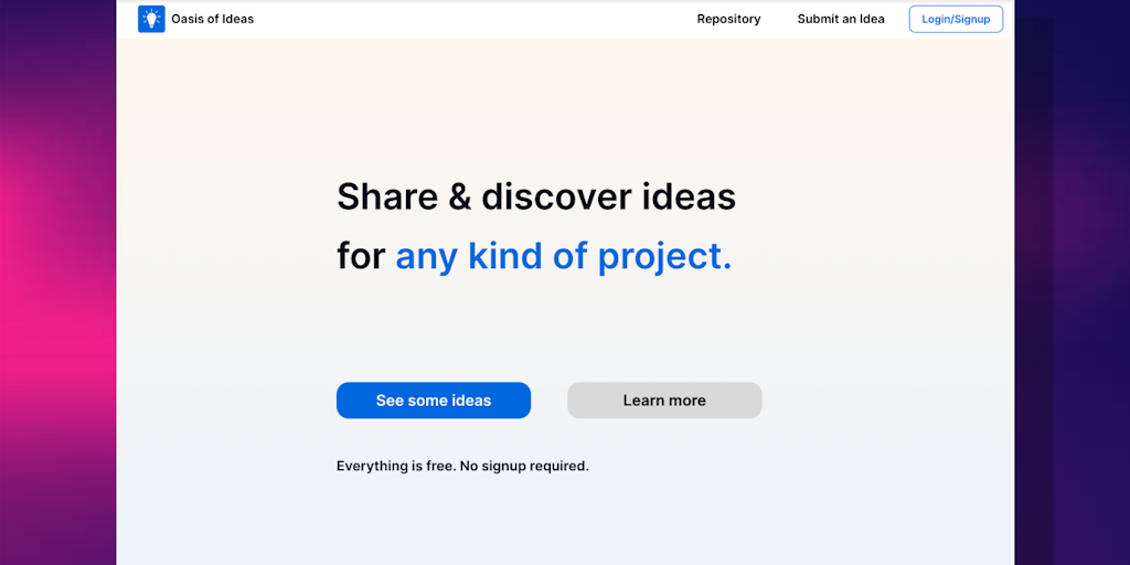 Oasis of Ideas - Share & discover ideas for any kind of project | Product Hunt