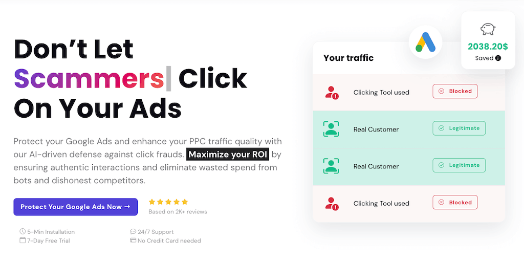 Protect your Google Ads and enhance your PPC traffic quality with our AI-driven defense against click frauds. Maximize your ROI by ensuring authentic interactions and eliminate wasted spend from bots