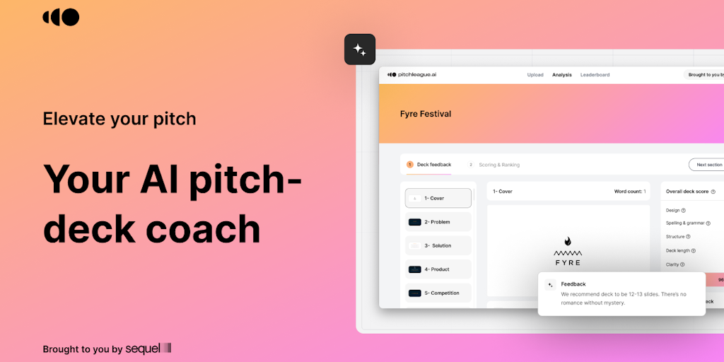 Elevate your pitch with your AI pitch deck coach The #1 pitch deck coach used by 3195 founders in beta.