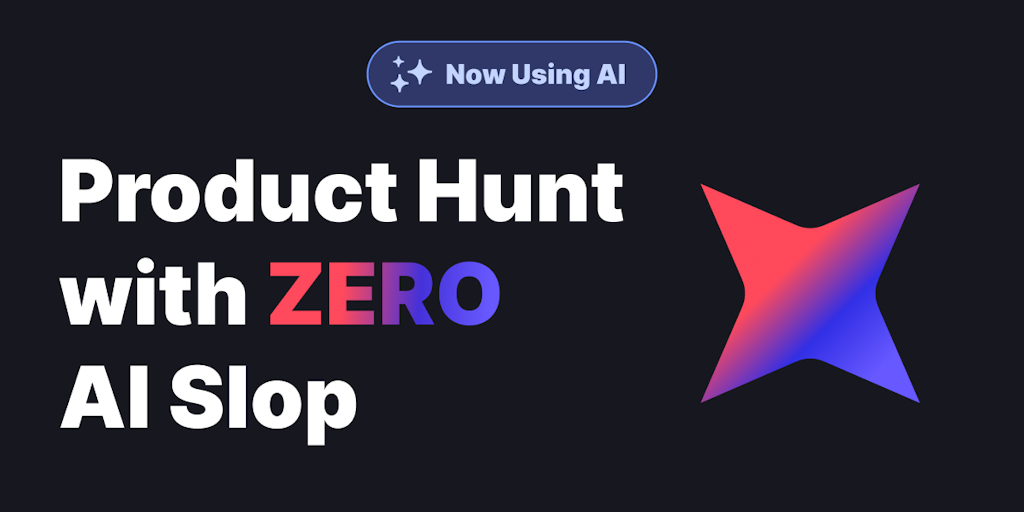 With oghunt you can view products on Product Hunt with ZERO AI Slop. This allows you to find cool new products without the CRINGE AI showing up and destroying the list. It's a safe, free range, and op