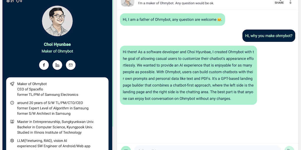 OHMYBOT! - Add a chatbot to your landing page | Product Hunt