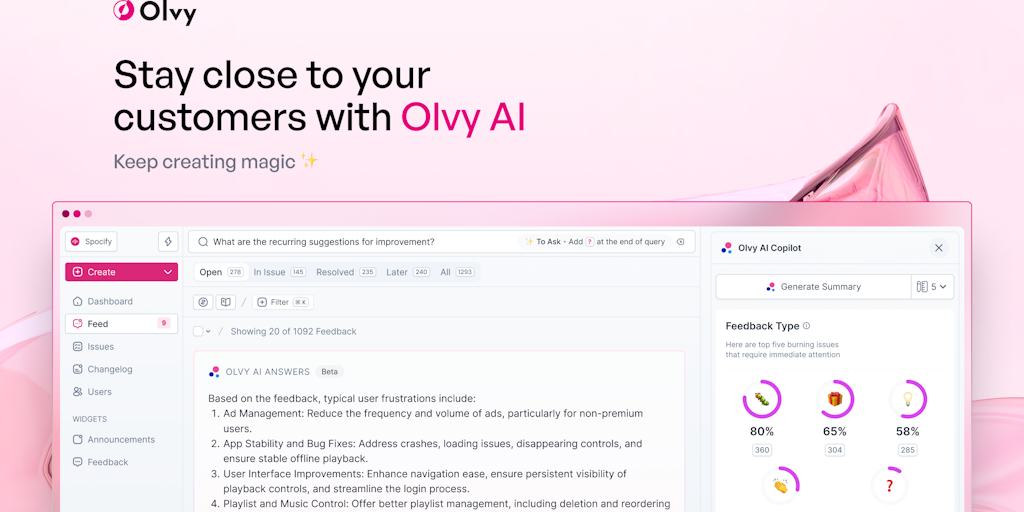 Olvy 3.0 - Speed up customer feedback analysis 10x with AI | Product Hunt