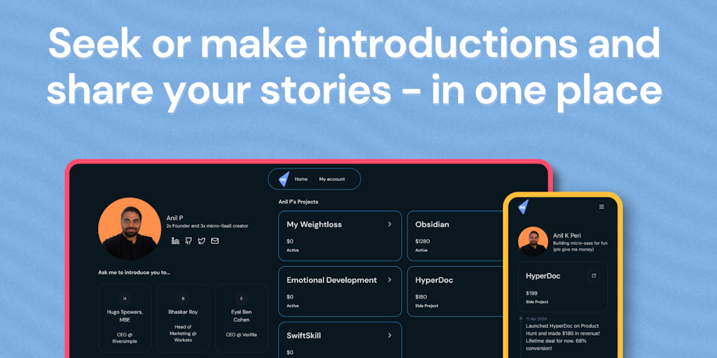 Show your network & your projects (#buildinginpublic) on Onwardwith.me Share your journey, meet new people, and empower others