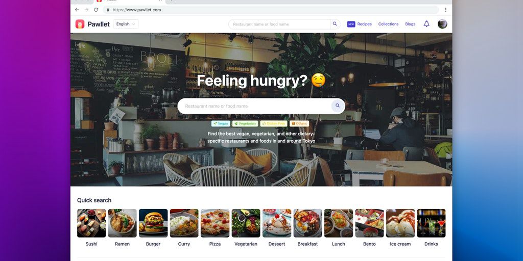 Pawllet helps people find vegan, vegetarian, and other dietary-specific restaurants or foods. You can search by restaurant name, food name, or even by food description. Currently, we are collecting da