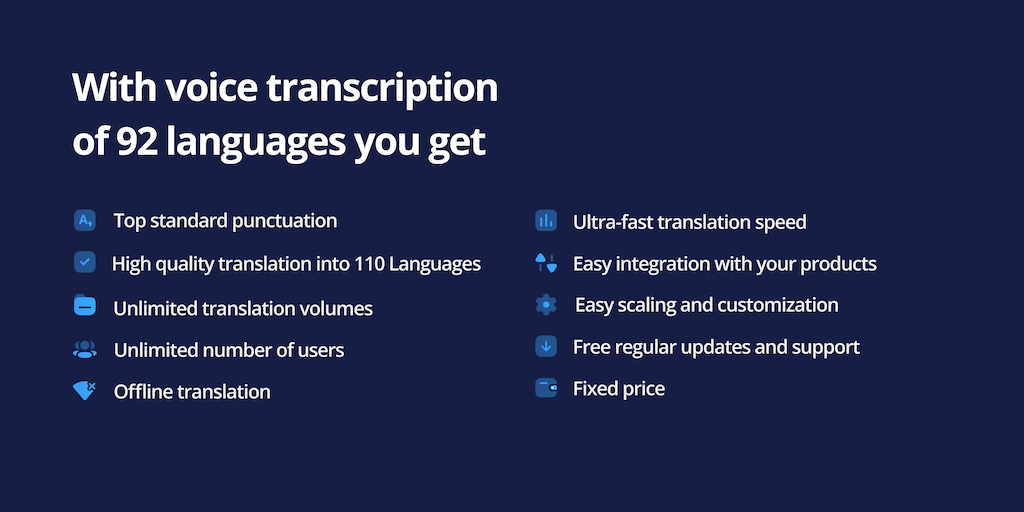 Unlock seamless communication with our fixed-price transcription & translation solution. Transcribe audio to 92 languages & translate text/docs into 110 languages for your company with our on-premise,
