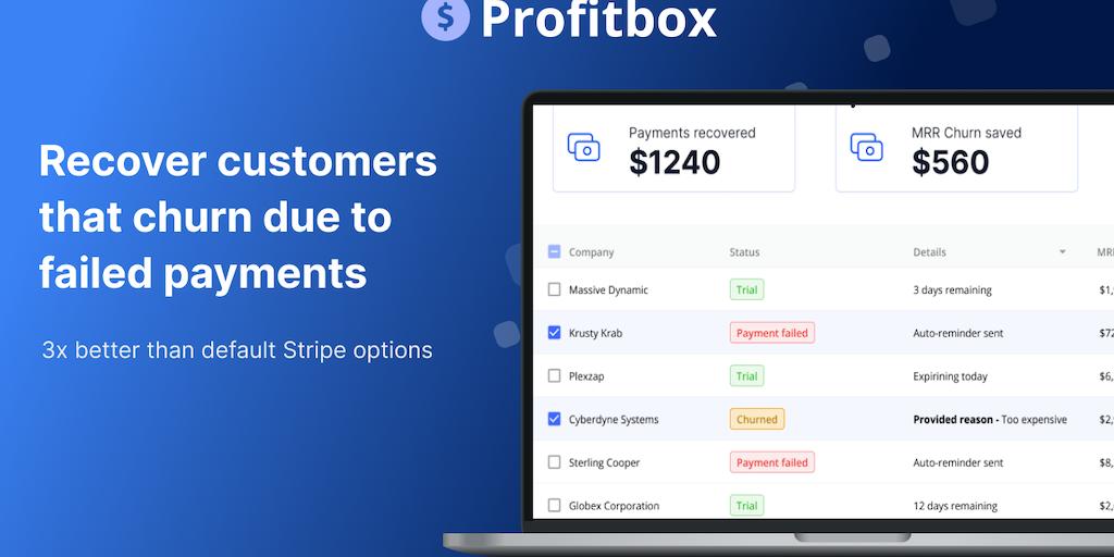 Profitbox - Recover customers that you lose to payment failures | Product Hunt