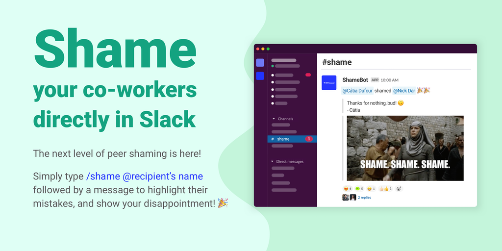 ShameBot by WFHomie - Publicly shame your teammates on Slack like they deserve! | Product Hunt