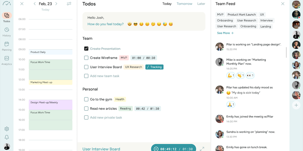 BeforeSunset is designed to help teams and busy professionals in daily planning and time management with; calendar coordination, team synchronization with real-time updates, personal and team progress