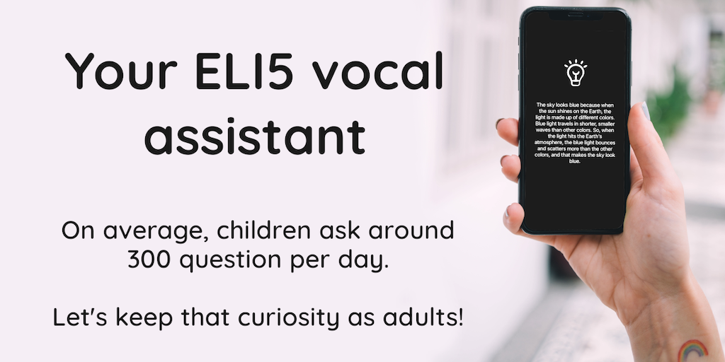On average, children ask around 300 questions per day! "Why?" will vocally (and safely) answer all your questions with ChatGPT like if you were 5 years old. Get simplified explanations to complex topi