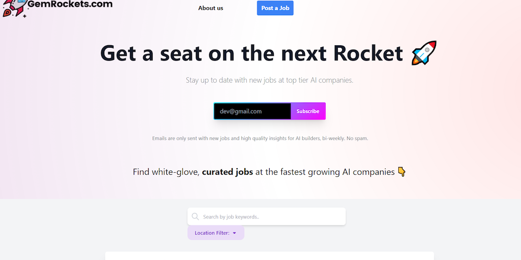 GemRockets.com - Curated jobs from the fastest growing AI companies | Product Hunt
