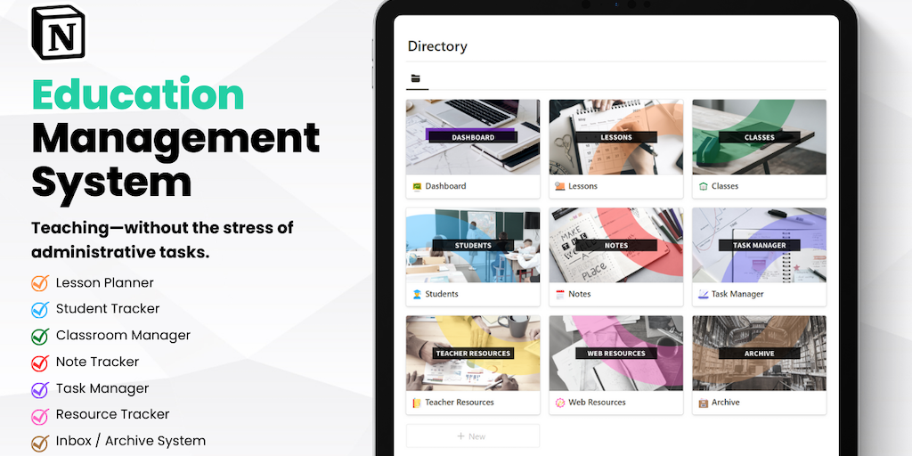 An education management system inside Notion that helps you streamline your administrative tasks as a teacher. Streamline lesson planning, track student progress, & keep your tasks organized. Easy to
