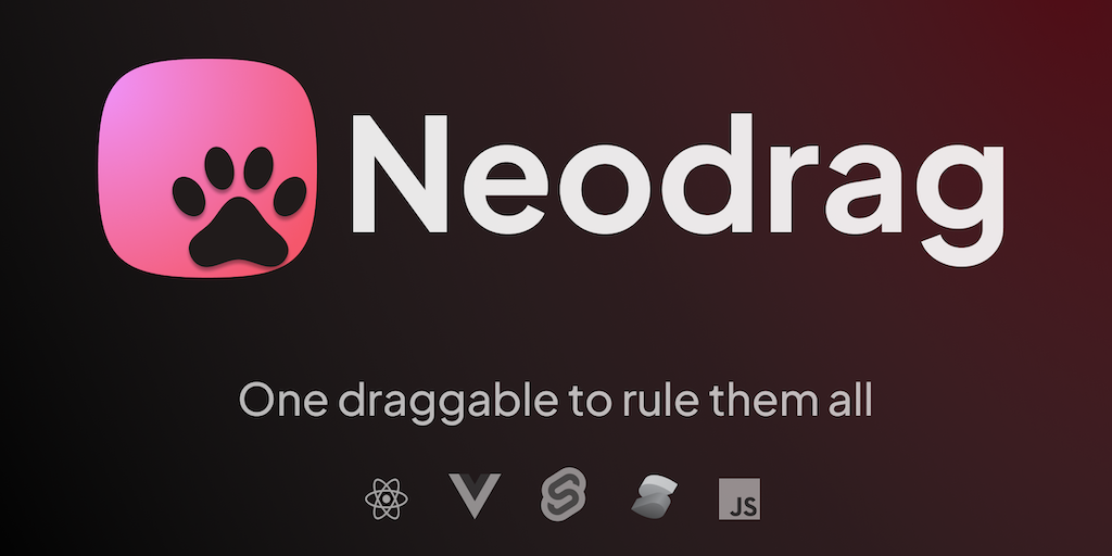 Neodrag is a tiny draggable library for all major frameworks like Svelte, React, Vue, SolidJS and plain JavaScript. As tiny as 1.67kb to 1.94kb, this allows for smooth, performant dragging. And you ma