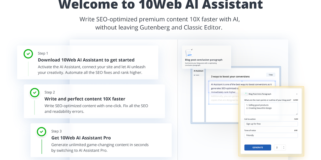 10Web AI Assistant for WordPress - Generate SEO-optimized content 10X faster with AI | Product Hunt