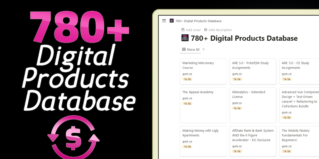 780+ Digital Products Database - Start your online business & digital product empire today | Product Hunt