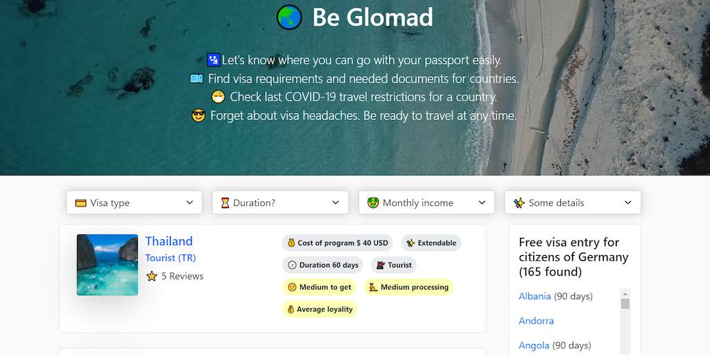 Glomad 2.0 is a collaborative knowledge base about visas. 🤝 We invite all members of the community to share their visa experiences, point out mistakes, suggest improvements that have made visa searche