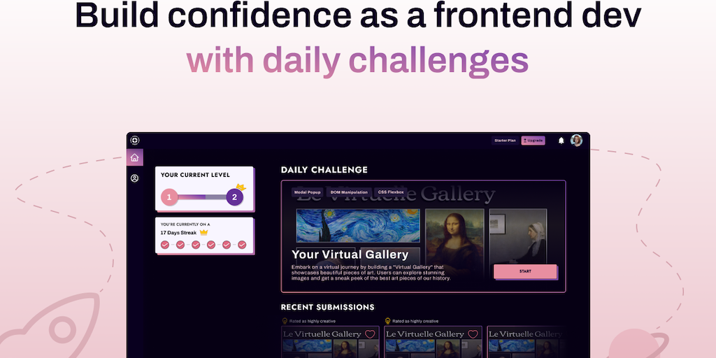 Interactive and rewarding daily frontend coding challenges to help you evaluate your current level, develop your skills, and build the confidence to land and keep any dev job.