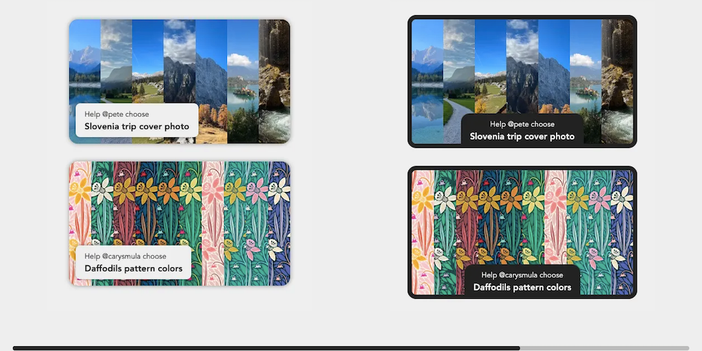 If you need to choose a design, a photo, a style or a color, Choosier will help you choose quickly and confidently. Choosier shows two images at a time until you find your favorite. Share your image p