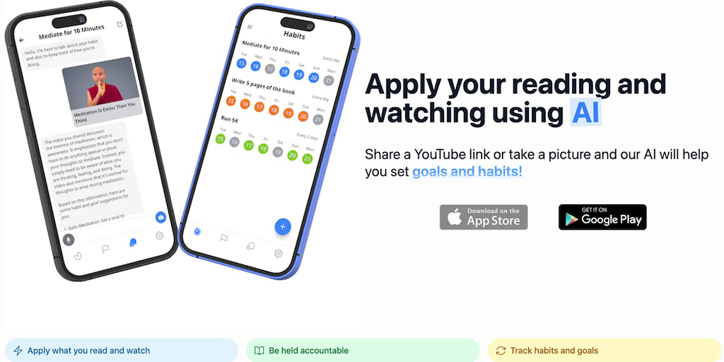 Intentional AI is an AI copilot for helping you apply advice from YouTube videos or screenshots to your daily life. Based on the contents, it guides you towards achievable habits and goals.