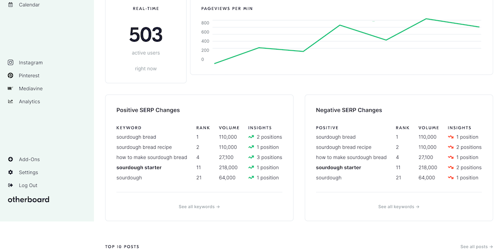 Otherboard is the only dashboard you need to grow your blog, gaining meaningful insights from your content and data sources, automatically. From analytics, to social media, even your ad network - we e