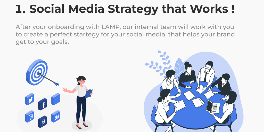 A subscription to make social media easy for startups. LAMP manages your social media accounts by creating effective strategy, engaging content, posting it on your social media and engaging with your