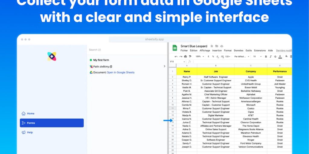 Sheetsify is the simplest and fastest app that was ever built to connect any form with Google Sheets, without coding or technical knowledge. Non-technical users are covered (Elementor, Webflow, Typefo