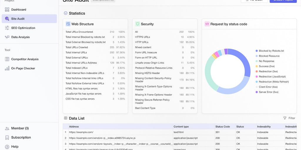Help you thoroughly check your website including code, content, structure and external link profile. Visualize all key data on the website. Gain a competitive advantage and keep your website ahead of
